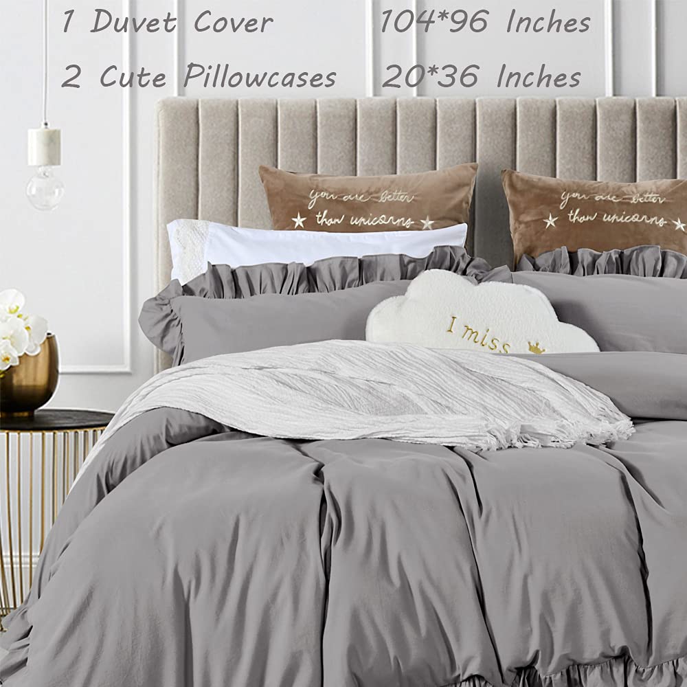 Amazon Com Queen S House Ruffle Shabby California King Duvet Cover 3 Pcs 100 Washed Cotton Grey Farmhouse Boho French Country Bedding Comforter Quilt Cover Oversized Ultra Soft Gray Bedding With Zipper Closure Home